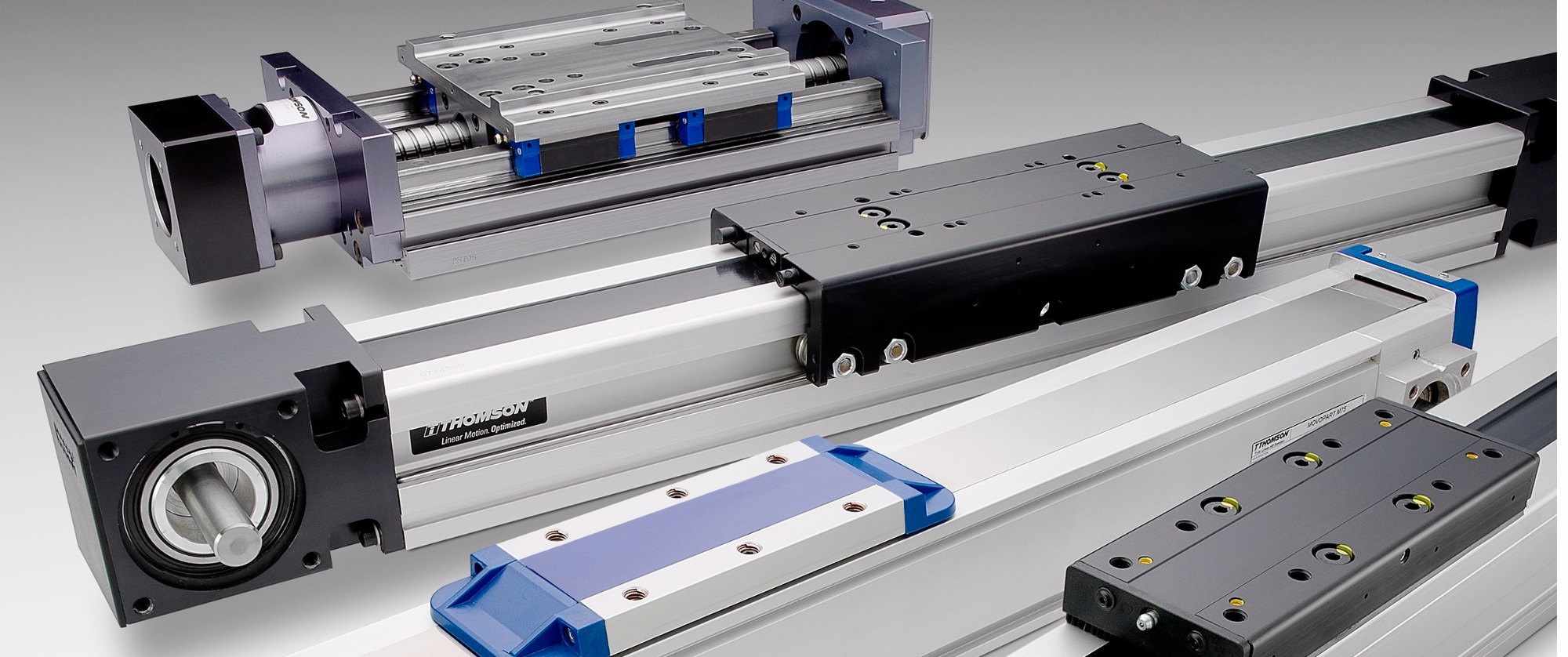 Thomson直線模組 Thomson直線模組擁有超過100年的直線運(yùn)動(dòng)產(chǎn)品生產(chǎn)經(jīng)驗(yàn)。 Thomson直線模組目前挑選了各品牌中競爭力的產(chǎn)品,組成了代表當(dāng)今高水平的產(chǎn)品系列。產(chǎn)品系列涵蓋自小,緊湊直至大,可靠的直線運(yùn)動(dòng)單元。 Thomson擁有豐富的滾珠絲杠驅(qū)動(dòng)和皮帶驅(qū)動(dòng)單元,采用了滾珠導(dǎo)軌、滑軌、導(dǎo)輪等各種導(dǎo)向技術(shù),設(shè)計(jì)用于惡劣的工作環(huán)境,可滿足您的高速或高精度系統(tǒng)對直線運(yùn)動(dòng)的需求。